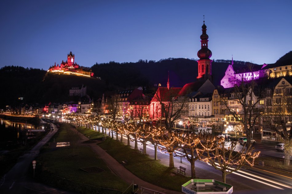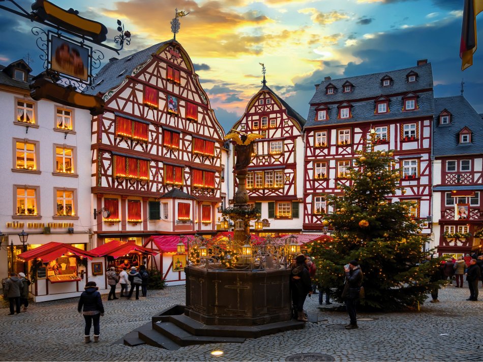 Heute fahren Sie an die Mosel. Am Vormittag genießen Sie den Weihnachtsmarkt in Bernkastel-Kues. Durch kleine schmale Gassen vorbei an festlich geschmückten Plätzen und Schaufenstern, umrahmt von jahrhundertealtem Fachwerk – so schlängelt sich der Weihnachtsmarkt durch die Altstadt von Bernkastel-Kues. Am Nachmittag Fahrt entlang der Mosel nach Cochem. Adventszauber beim Weihnachtsmarkt im und rund ums stimmungsvoll dekorierte Adventszauberzelt bis in die mittelalterlichen Gassen der Altstadt. Weihnachtsmarktbuden, Glühweinstände, winterliche Köstlichkeiten, das Ganze dicht am Moselufer, und über allem thront majestätisch die Reichsburg und lädt zum Besuch ein. Die alt-ehrwürdige Reichsburg Cochem hat etwas ganz Besonderes zu bieten. Im Rosenhof der Burg wird die traditionelle Weihnachtsgeschichte von Schauspielern und lebenden Tieren inszeniert. Ein einzigartiges Erlebnis! Anschließend Heimreise entlang der Mosel Richtung Koblenz und über Bingen – Mainz wieder zurück in die Ausgangsorte.